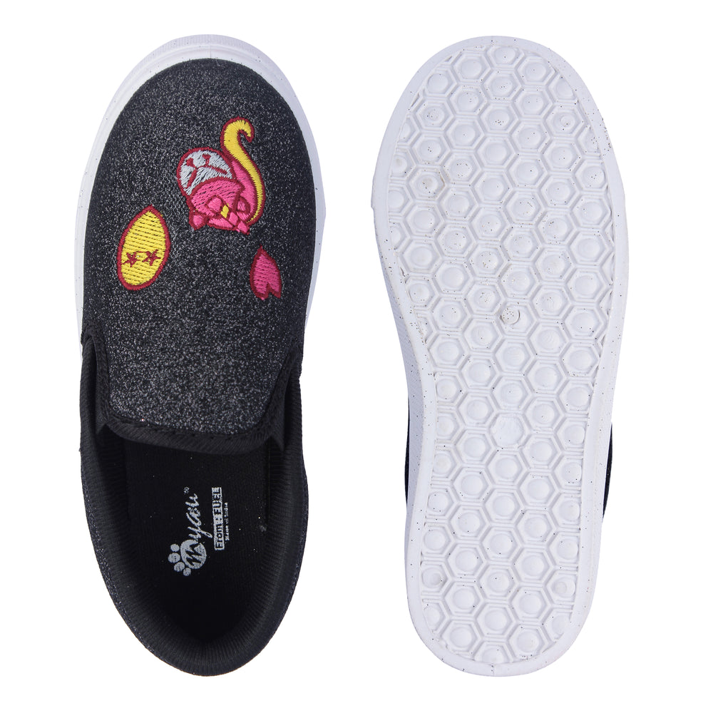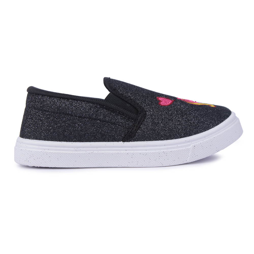 Pretty in Black Sparkle: These girls' shoes are the perfect blend of style and comfort. With their sparkling Black color, they're ideal for both regular wear and special occasions. Easy to slip on and off, they offer convenience without compromising on fashion. Whether she's dancing, playing, or simply strolling through the day, these shoes will be her constant companions, adding a touch of dazzle to every movement. The soft material ensures all-day comfort, while the sturdy construction provides durability. Elevate any outfit with these versatile and eye-catching shoes. Make every step sparkle with Pretty in Black Sparkle