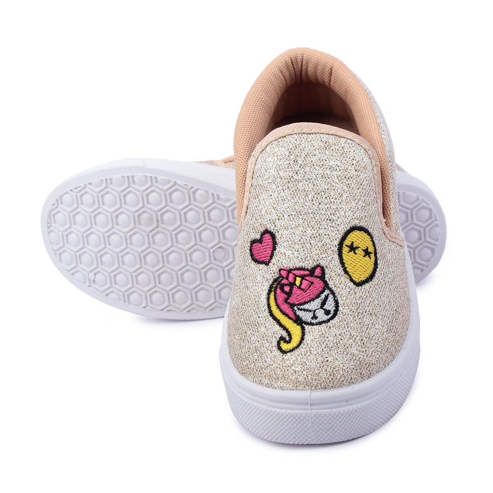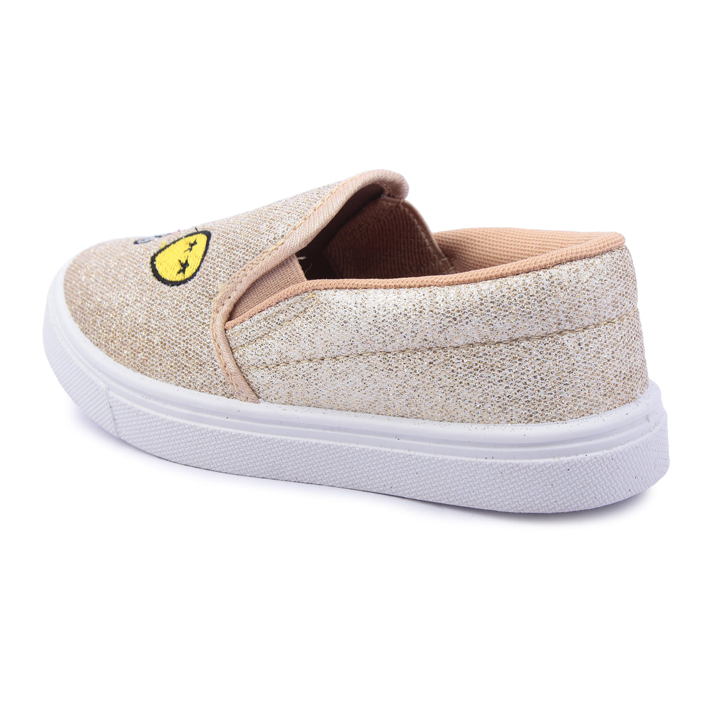 Pretty in Golden Sparkle: These girls' shoes are the perfect blend of style and comfort. With their sparkling Golden color, they're ideal for both regular wear and special occasions. Easy to slip on and off, they offer convenience without compromising on fashion. Whether she's dancing, playing, or simply strolling through the day, these shoes will be her constant companions, adding a touch of dazzle to every movement. The soft material ensures all-day comfort, while the sturdy construction provides durability. Elevate any outfit with these versatile and eye-catching shoes. Make every step sparkle with Pretty in Golden Sparkle