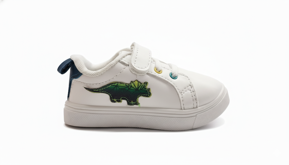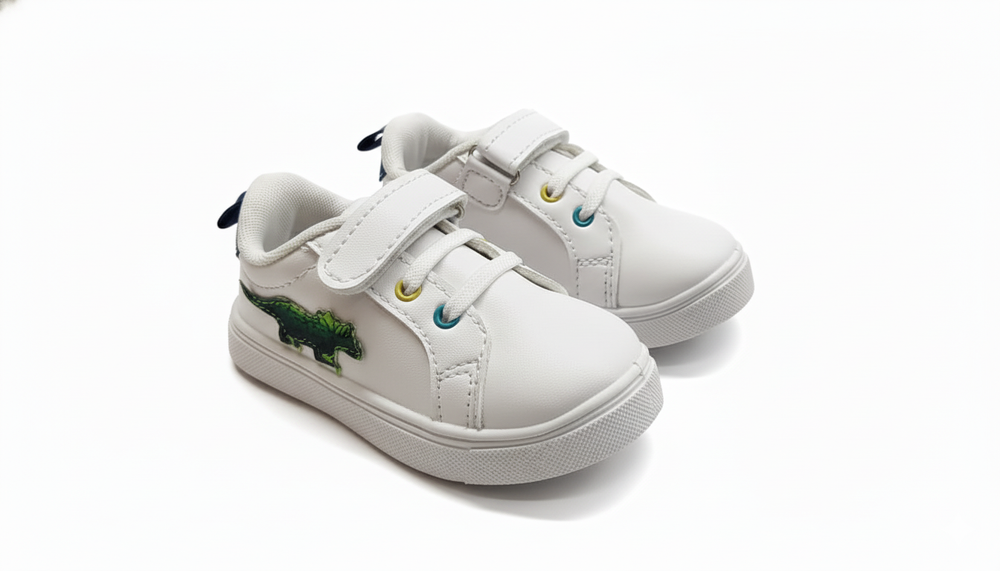 Add a roar of fun to your child’s steps with Myau Kids White Shoes, specially designed for toddlers aged 1 to 5 years. These adorable sneakers feature a cute dinosaur side patch that kids will love, and a hook-and-loop strap for quick, secure fitting. Made with a soft, breathable upper and a flexible, lightweight sole, these shoes are perfect for playtime, school, and everyday adventures. The classic white color matches any outfit, while the dino design adds a playful touch to every step!