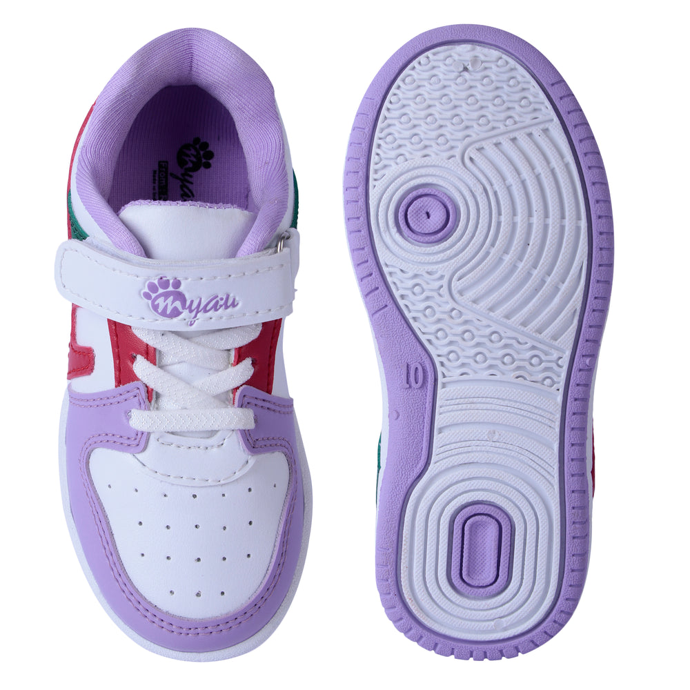 Step into style and comfort with these delightful Myau Kids Sneakers. Perfect for active little feet, these sneakers feature a vibrant, colourful design that children will love. The lightweight construction ensures unrestricted movement during play, running, and daily activities, while the durable build stands up to the rough and tumble of everyday wear. These versatile shoes are ideal for school, casual outings, or playtime adventures. The thoughtfully designed structure provides proper support for growing feet, and the easy-to-wear style makes them a practical choice for both parents and kids. Whether it's for the playground or a casual day out, these sneakers combine functionality with fun, making them an excellent addition to any child's footwear collection. Please refer to the size chart to ensure the perfect fit for your little one.